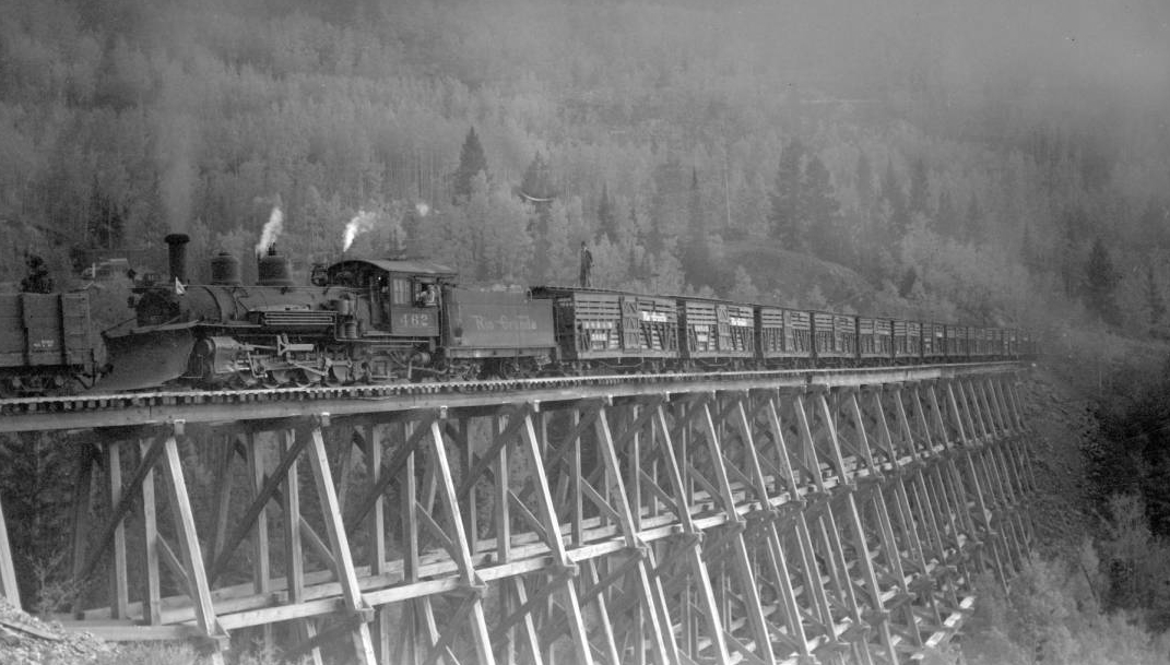 462 crossing trestle at Ophir, Colo., October 41, 1947